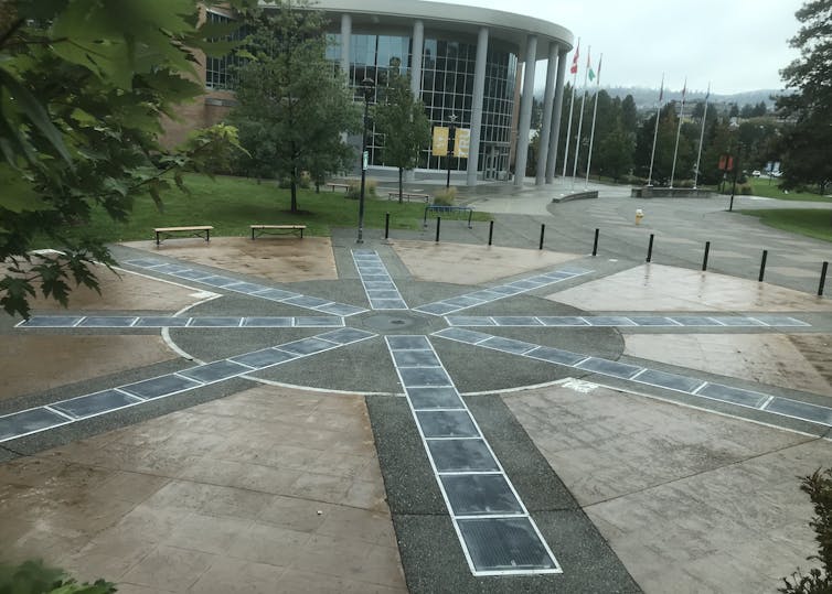 My project at Thompson Rivers University shows how this is being done in Canada. This project — known as the Solar Compass — is part of Canada’s first solar sidewalk system.