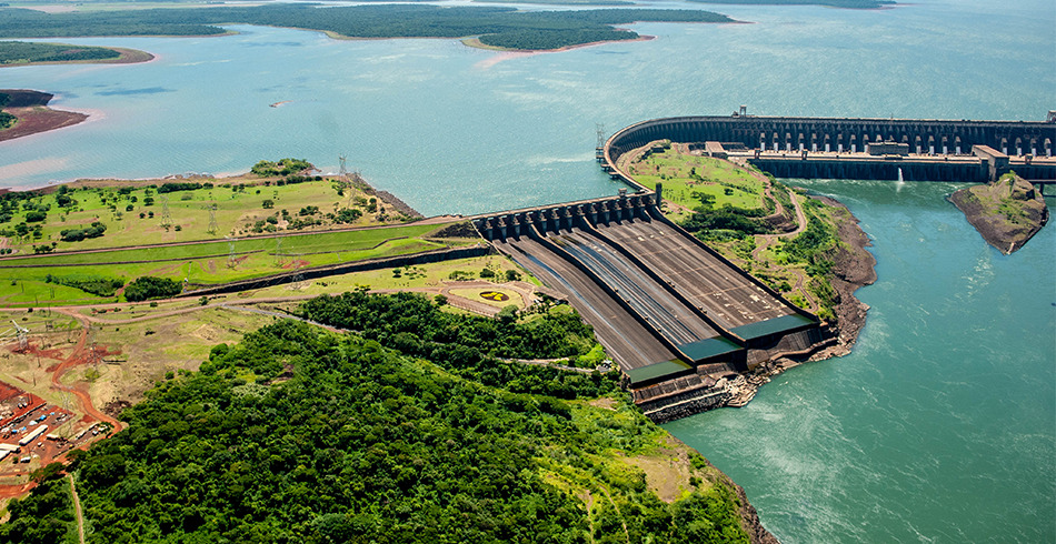 Straddling the Paraná River bordering Brazil and Paraguay, Itaipu Dam’s hydroelectric power plant is run by both countries. The installed generation capacity of the plant is 14GW, with 20 generating units providing 700MW each. Of the 20 generator units currently installed, 10 generate at 50Hz for Paraguay while the other half generate at 60Hz for Brazil. Since the output capacity of the Paraguayan generators far exceeds the load in Paraguay, most of their production is exported directly to the Brazilian side, from where two 600 kV HVDC lines, each approximately 800km long, carry the majority of the energy to the São Paulo/Rio de Janeiro region where the terminal equipment converts the power to 60Hz.